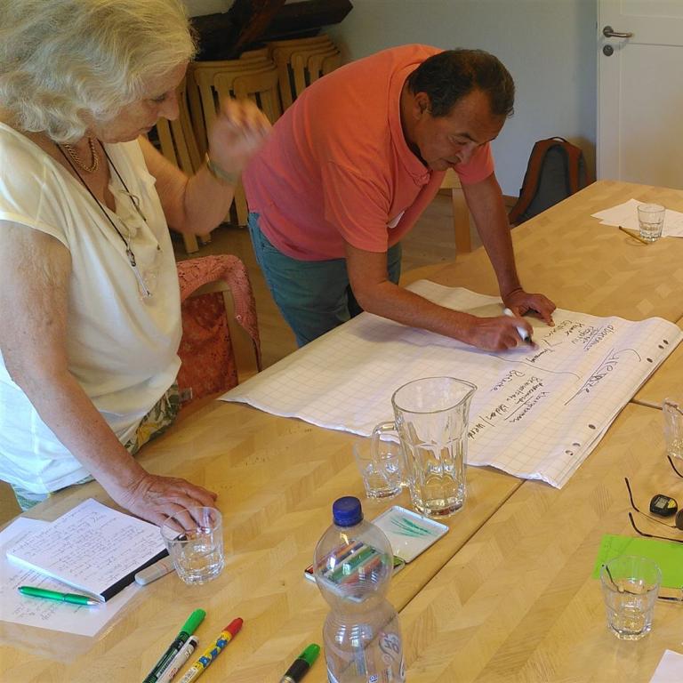 Sie können mich auch gerne anfragen, wenn Sie für Ihre Freiwilligen oder Mitarbeiter*innen ein Erfahrungs-Austausch-Treffen (2 Stunden) von mir geleitet haben möchten. Dort geht es darum eine kurze Einführung in die GFK zu geben. Danach sammeln wir die "Themen" Ihrer Teilnehmer*innen, um gemeinsam 1-2 konkrete Beispiele auszuwählen und diese anhand einer Struktur (5x5 Minuten-Methode) so zu bearbeiten, dass die einzelnen Ressourcen und Erfahrungen der Teilnehmer*innen eingebracht werden können. Die*der Fallsteller*in kann danach einen Ideenkorb mitnehmen, wie er*sie zukünftig mit diesem Thema umgehen wird. Dabei fliesst jeweils ebenfalls die Haltung der GFK ein.